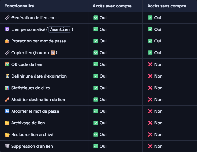 Fonctions “Sans compte” vs “Avec compte” (en date du 5 Juillet 2025) (05/07/2025)